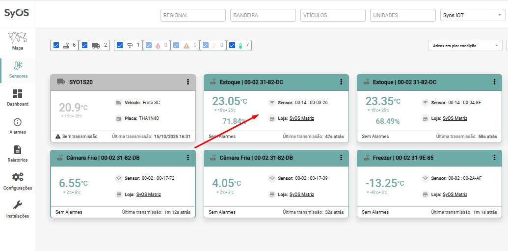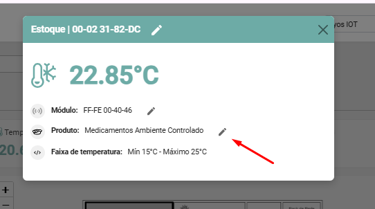 3. Assim que clicar, aparecerá uma janela com os dados do sensor e mais alguns lápis de edição, clique naquele que estiver na linha do 'produto':