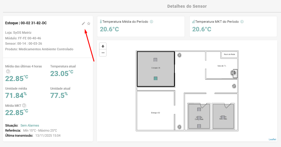 2. Quando os detalhes do sensor aparecerem, clique no lápis próximo ao nome do sensor: