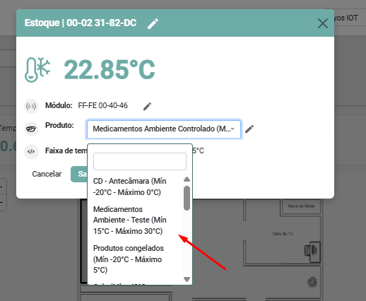 Observação: Caso não localize a temperatura que necessita, será necessário criar um novo produto.
