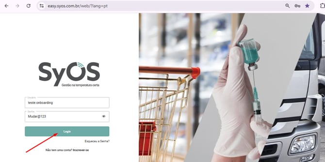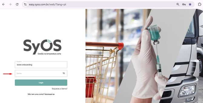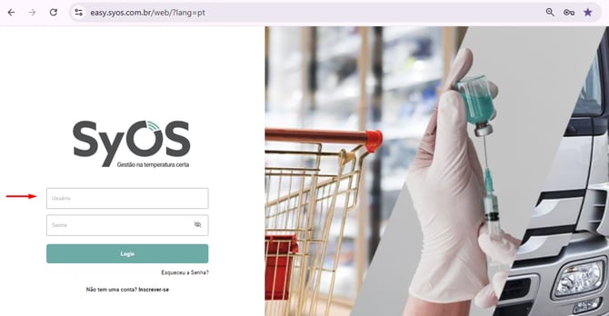 2. Se já está cadastrado e recebeu essas informações, acesse a plataforma da Syos através do link: https://easy.syos.com.br/ e em seguida digite o seu login no campo indicado: